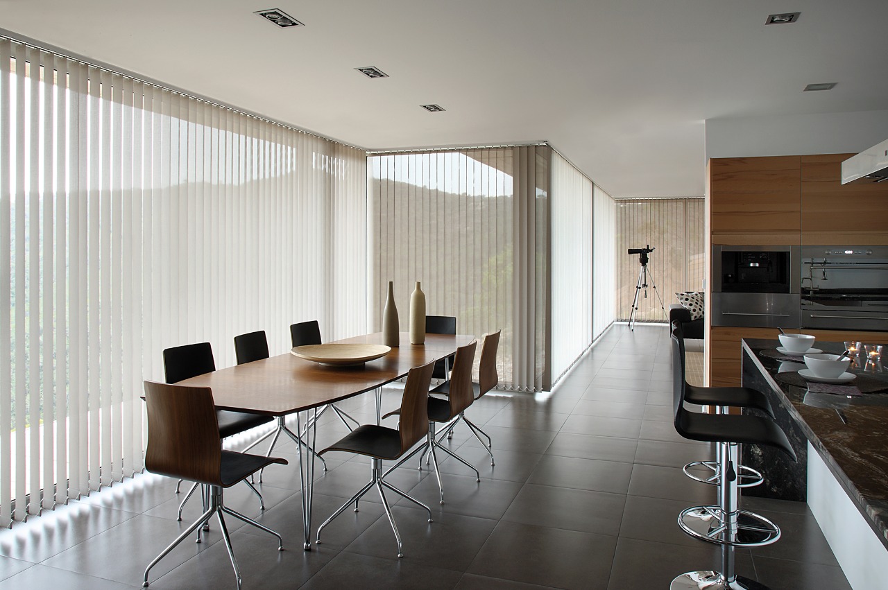 Las bandas verticales cuentan con un diseño simple e ideal para grandes ventanales. Es un sistema que integra componentes de gran calidad, permitiendo varios escenarios de luz, de acuerdo con la posición de sus bandas. Cerradas permiten una completa privacidad, y abiertas llegan a ser casi imperceptibles.